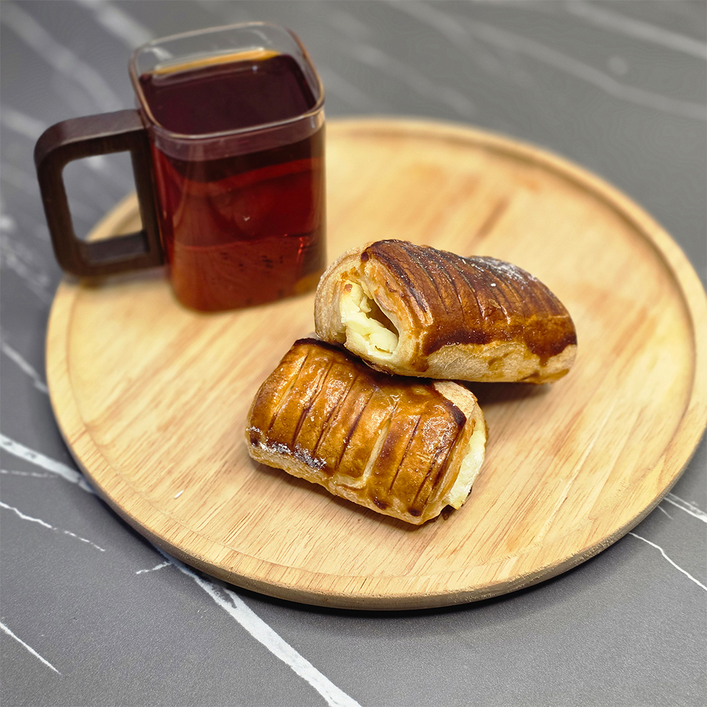 لایهی بیرونی این اشترودل از خمیر مخصوصی تهیه شده که در فر به خوبی پف کرده و لایهلایه (Flaky) شده است. همانطور که در تصویر برشخورده مشخص است، میان این لایههای طلایی با پنیر خامهای و صبحانهی مرغوب پر شده که طعمی ملایم و بافتی لطیف دارد. تضاد بین تردیِ لایهی رویی و نرمیِ لایهی میانی، تجربهای متفاوت از یک نانِ مغزدار را رقم میزند.