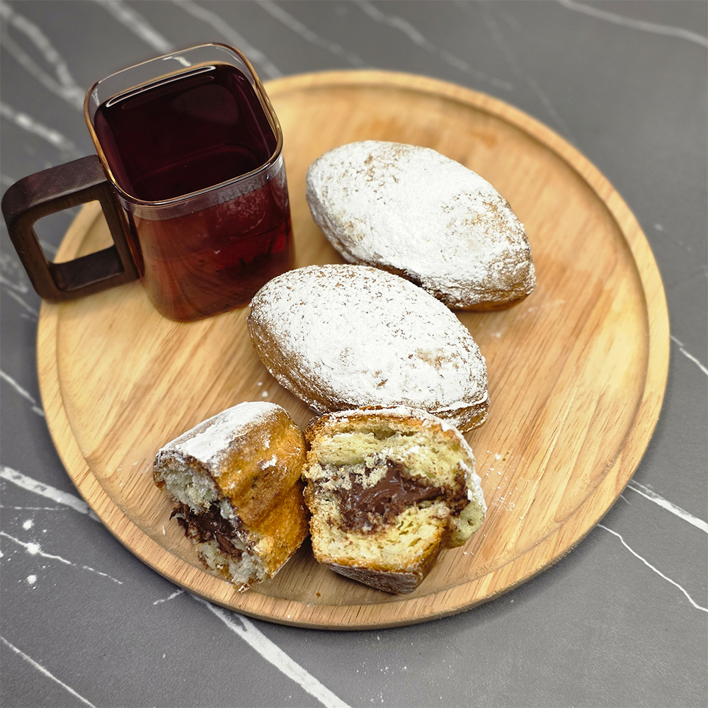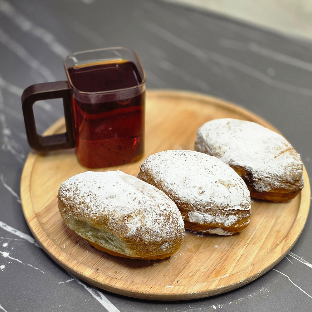 همانطور که در تصویر برشخوردهی محصول مشاهده میکنید، لایهی بیرونی این شیرینی یک نانِ بسیار لطیف و هوادهی شده است که با لایهای ظریف از پودر قند پوشانده شده است. غافلگیری اصلی در میان این شیرینی نهفته است؛ جایی که کرم شکلات غلیظ و مرغوب قرار دارد. تضاد بین شیرینی ملایم نان و غلظت شکلات، ترکیبی میسازد که با هر گاز، حسِ تازگی و کیفیت را منتقل میکند.